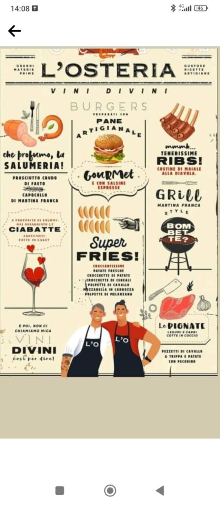 Every visit to our osteria is a journey through the authentic flavors of Salento, served with a touch of modernity in a warm and welcoming atmosphere. We look forward to welcoming you to share an unforgettable gastronomic experience!